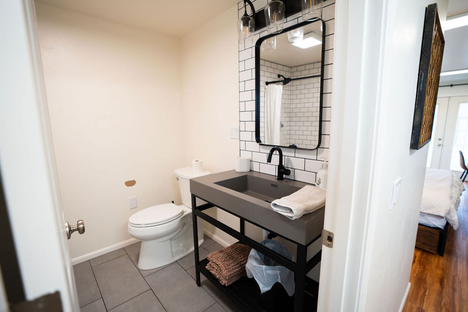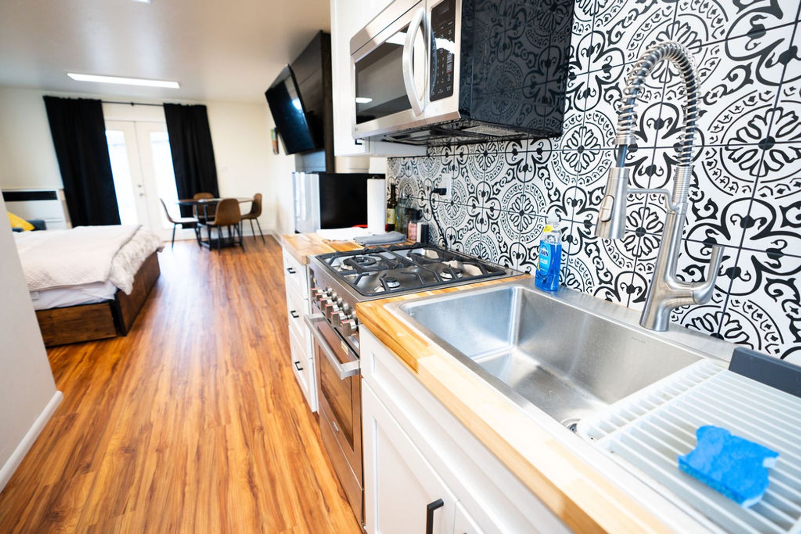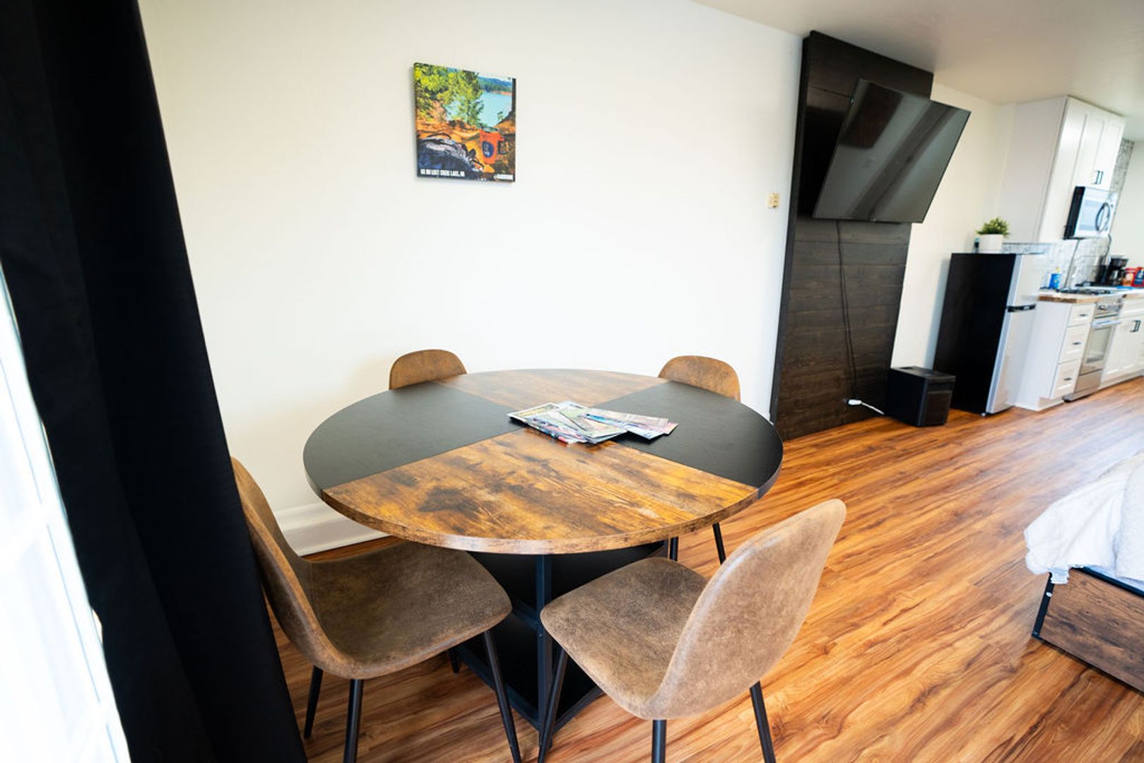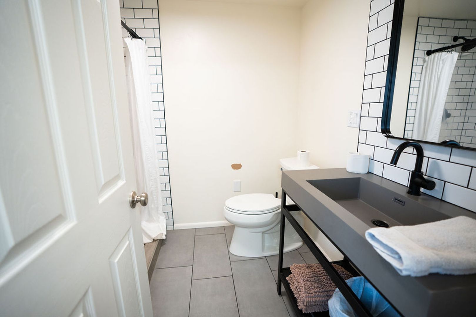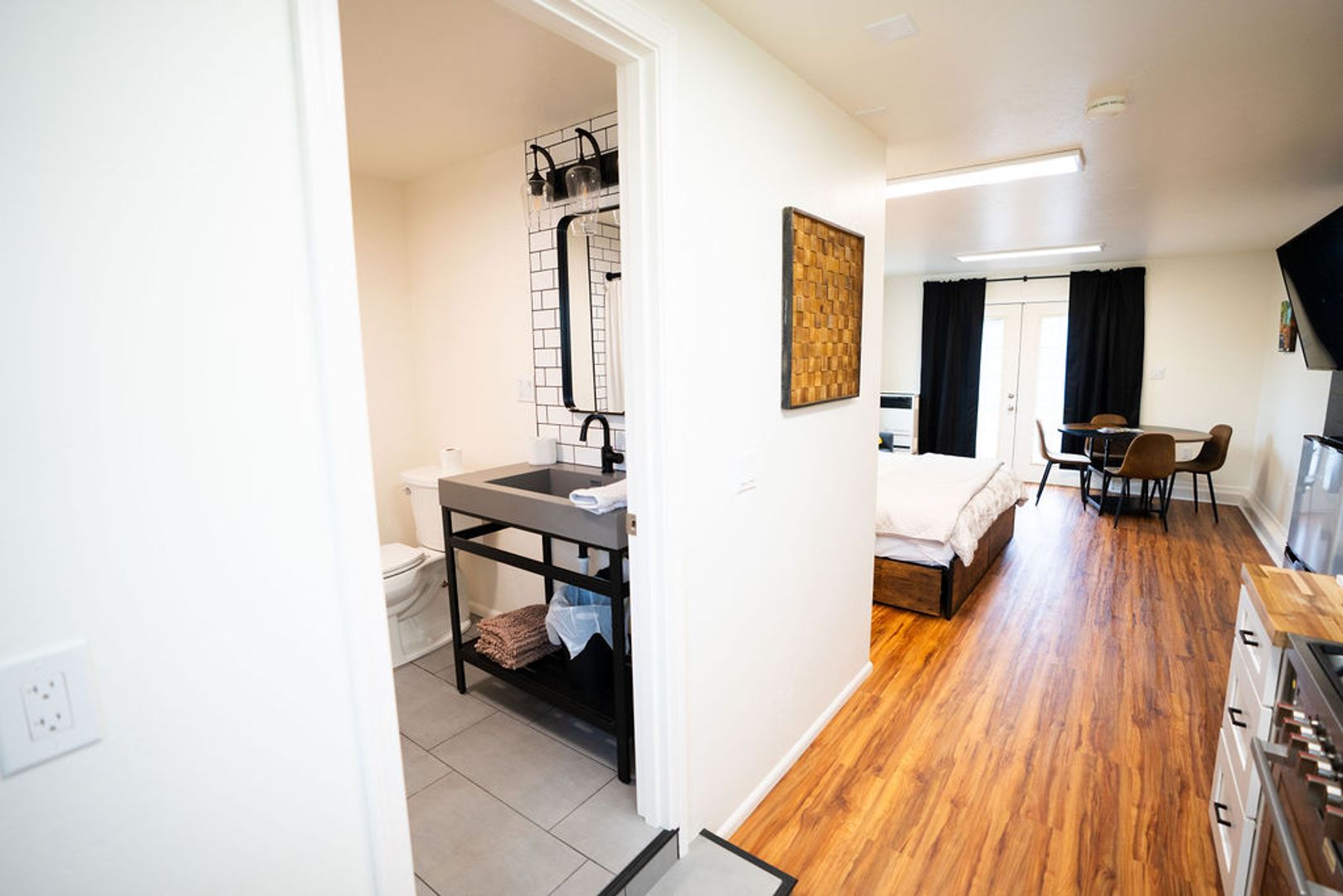Located in McKinleyville, This studio is behind Six Rivers Brewery! The home features, open space, with king bed, table, mounted TV, full kitchen with lots of counter space and cabinet space for the place. The bathroom is full size with step in shower and nice size vanity and space.