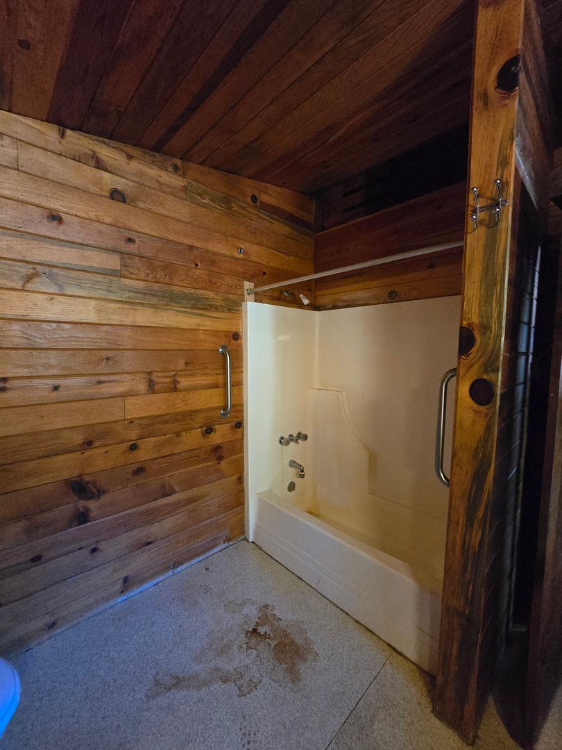 Bathroom: 1 full in the house and 1/2 in the shop