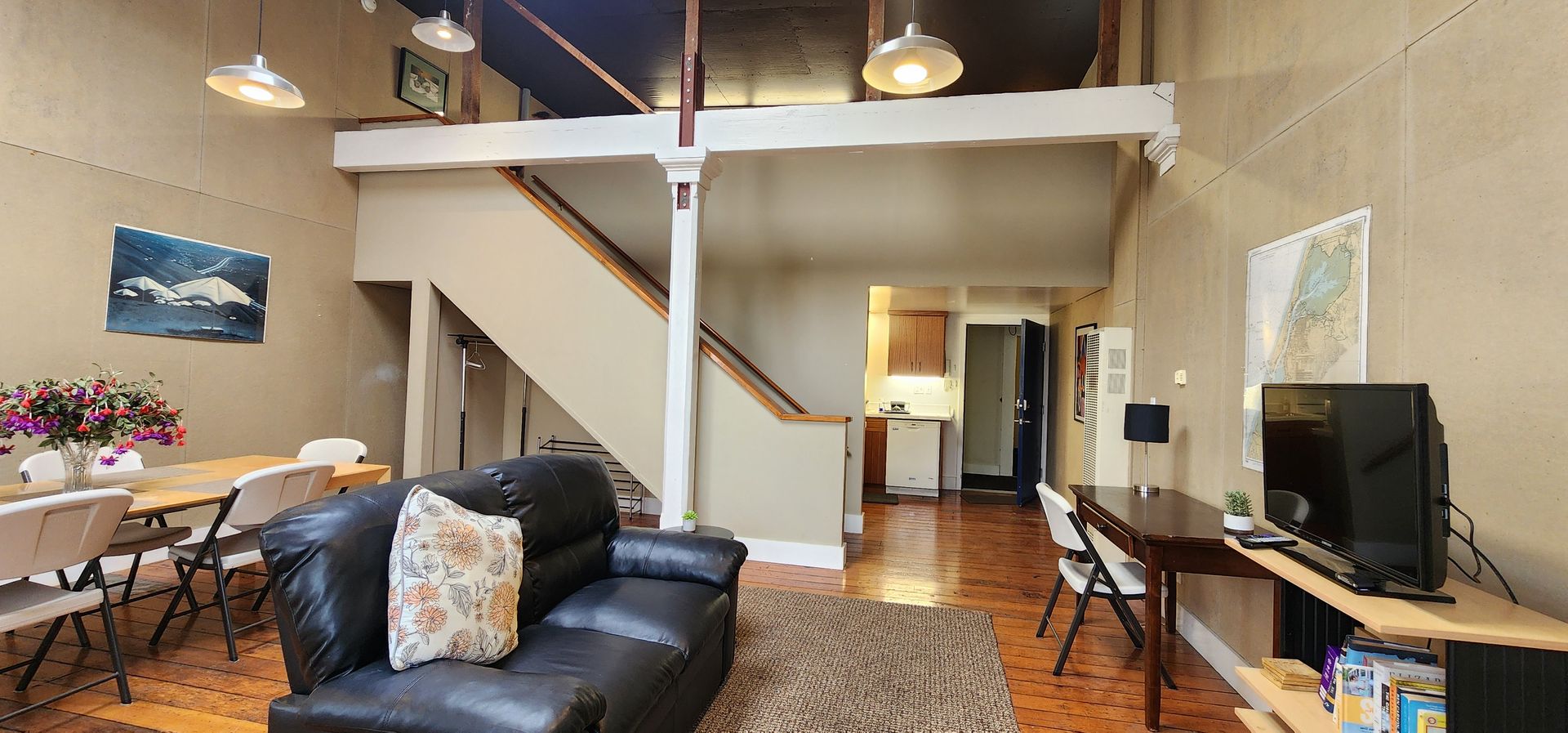 Interested in Living in Old Town Eureka, right by center? This building is the 2nd oldest commercial building in Eureka and it features a private entry, this unit is has full kitchen with dishwasher, fridge, stove and lots of cabinet space. The main floor is open with the original brick walls, views of the bay, tall ceilings, the loft of upstairs has queen size bed and a good size closet. Bathroom has tub/shower combo and nice size vanity.