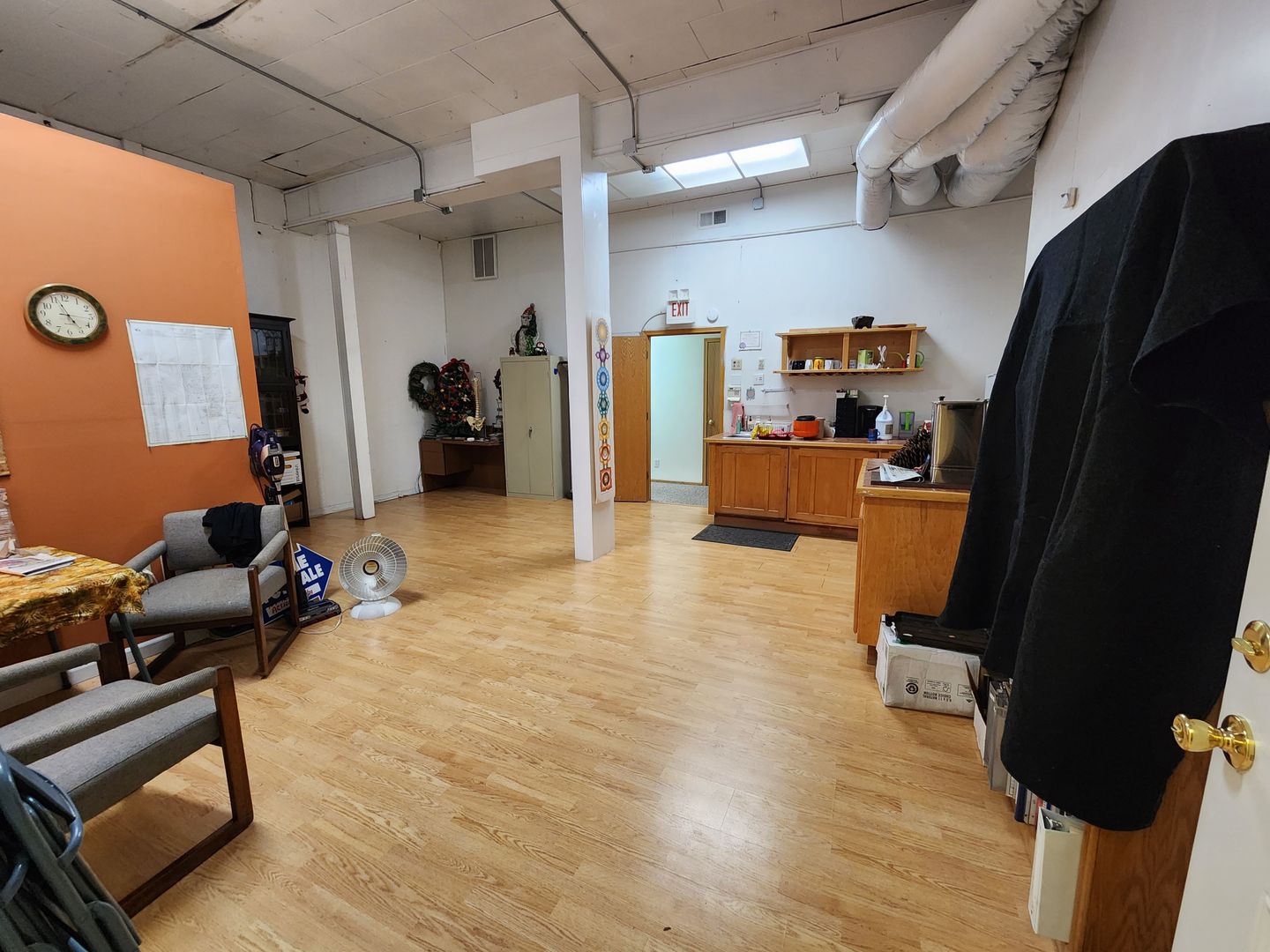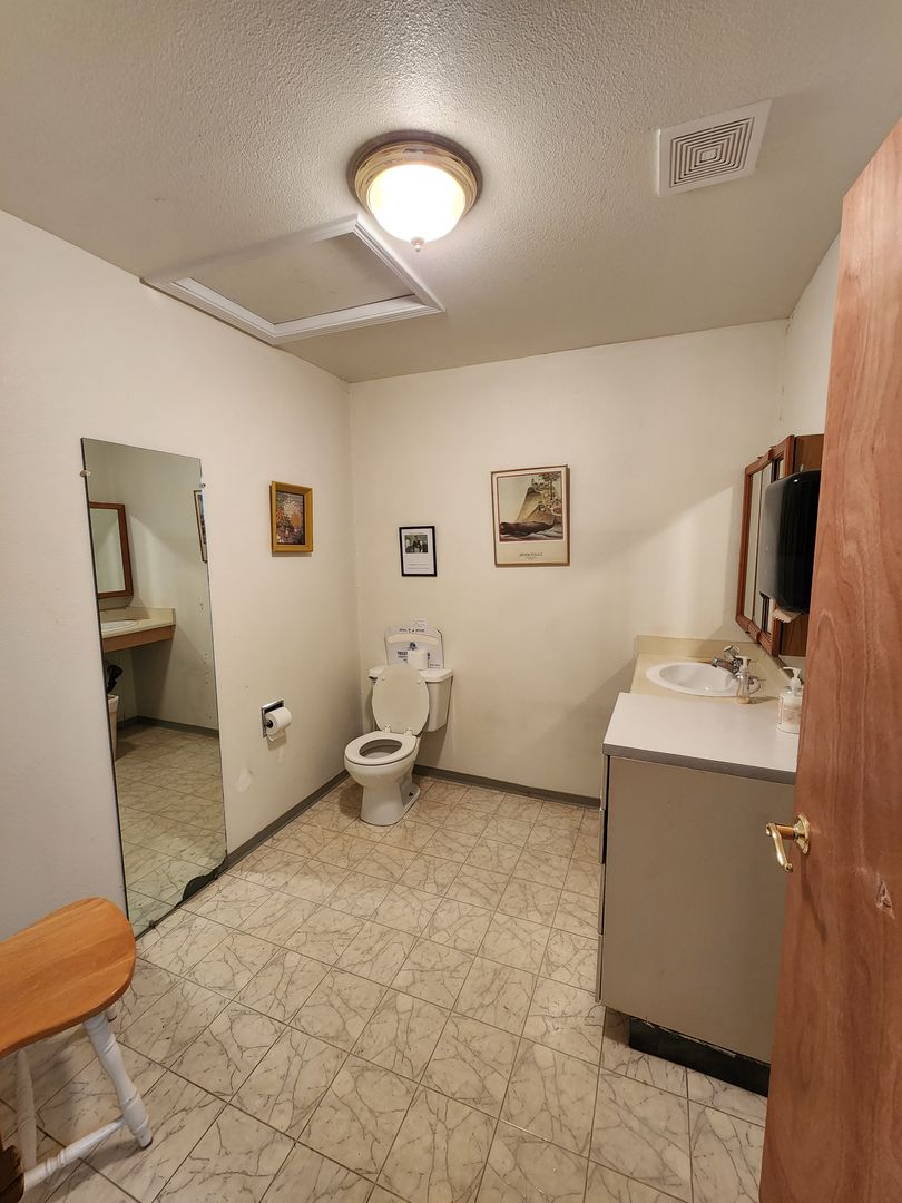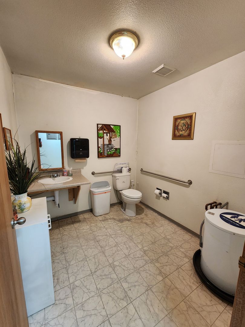 This office suite features a entry with a waiting room, one single office space, common area with kitchen and 2 ADA bathrooms and back entry to the parking lot.